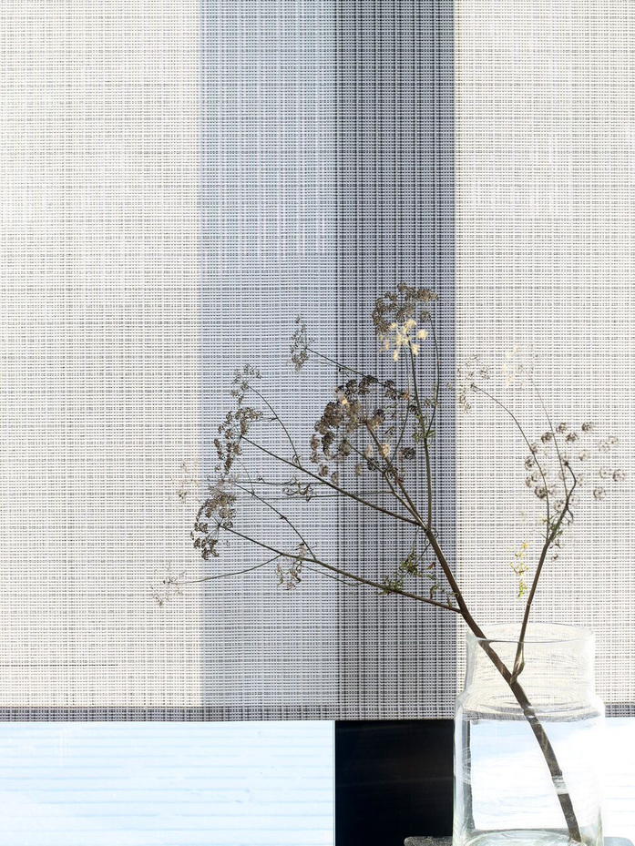 The structure of the Cloud blind fabrics sifts light like clouds, ever changing. The different characteristics of the fabrics come out depending on the time of the day: outside light shows the structure and darkness brings out the different tones of the fabrics. There are both two-coloured and multi-coloured fabrics in the Cloud collection.