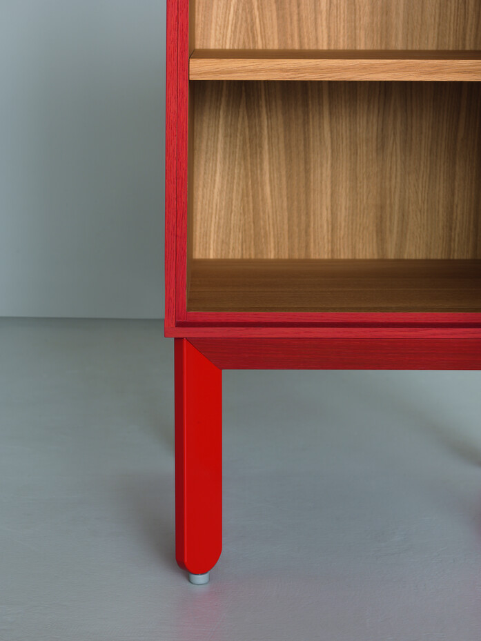 Storage system, sideboard, solid wood Doors with Blum Tip-on Blumotion binder Drawer with self-closing from w 122 cm with center wall Available with KIN Base 2: steel frame matt powder coated