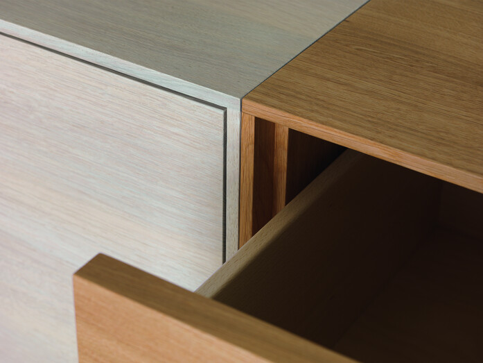 MATERIAL Ash white oiled, oak, oak colour stain, American walnut – horizontal grain