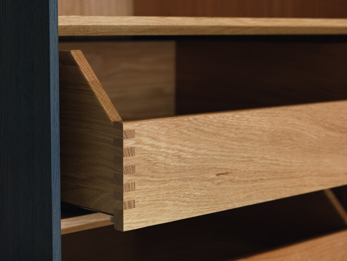 Storage system, wardrobe, single / double-door, solid wood Demountable, wooden plinth h 6 cm Doors with Blum Tip-on Blumotion binder 2 shelves included in delivery