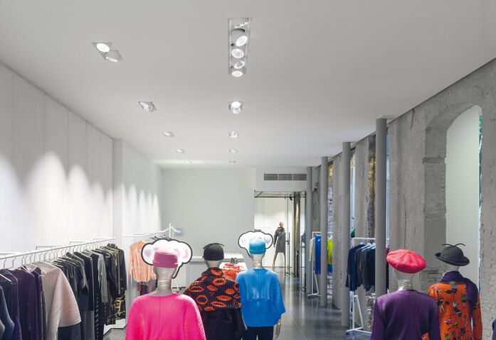 Light is an indispensable tool for presenting brands and products effectively in retail settings. In addition to brand appropriate, authentic presentation, energy efficiency also plays a crucial role when it comes to implementing shop and retail lighting concepts. The INTRO modular lighting system combines various types of luminaires that use the very latest LED technology, and offers retailers an efficient lighting solution that can be fully customised to cater for various areas of a store: from shop windows, shelves and recesses through to activity spaces – INTRO can be used in any area.